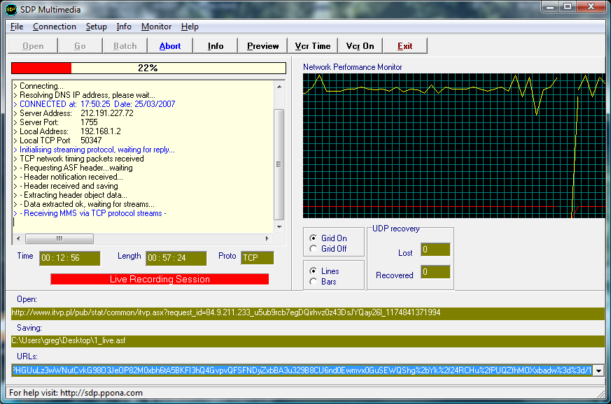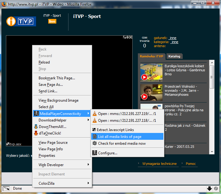 Pierwszy krok jest tylko potrzbny gdy odnosnik bezposredni nie jest wlasciwym linkiem do streamu a tylko jego zaladowaczem ;) jak to ma np. miejsce na itvp.pl. Warto jednak to zrobic by upewnic sie czy nasz link jest naprawde tym linkiem ktorego szukamy. Jesli jestes pewein ze masz bezposredni link przejdz do "Nagrywania strumienia"